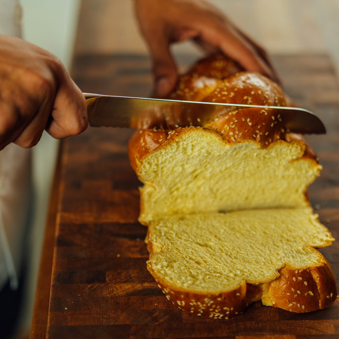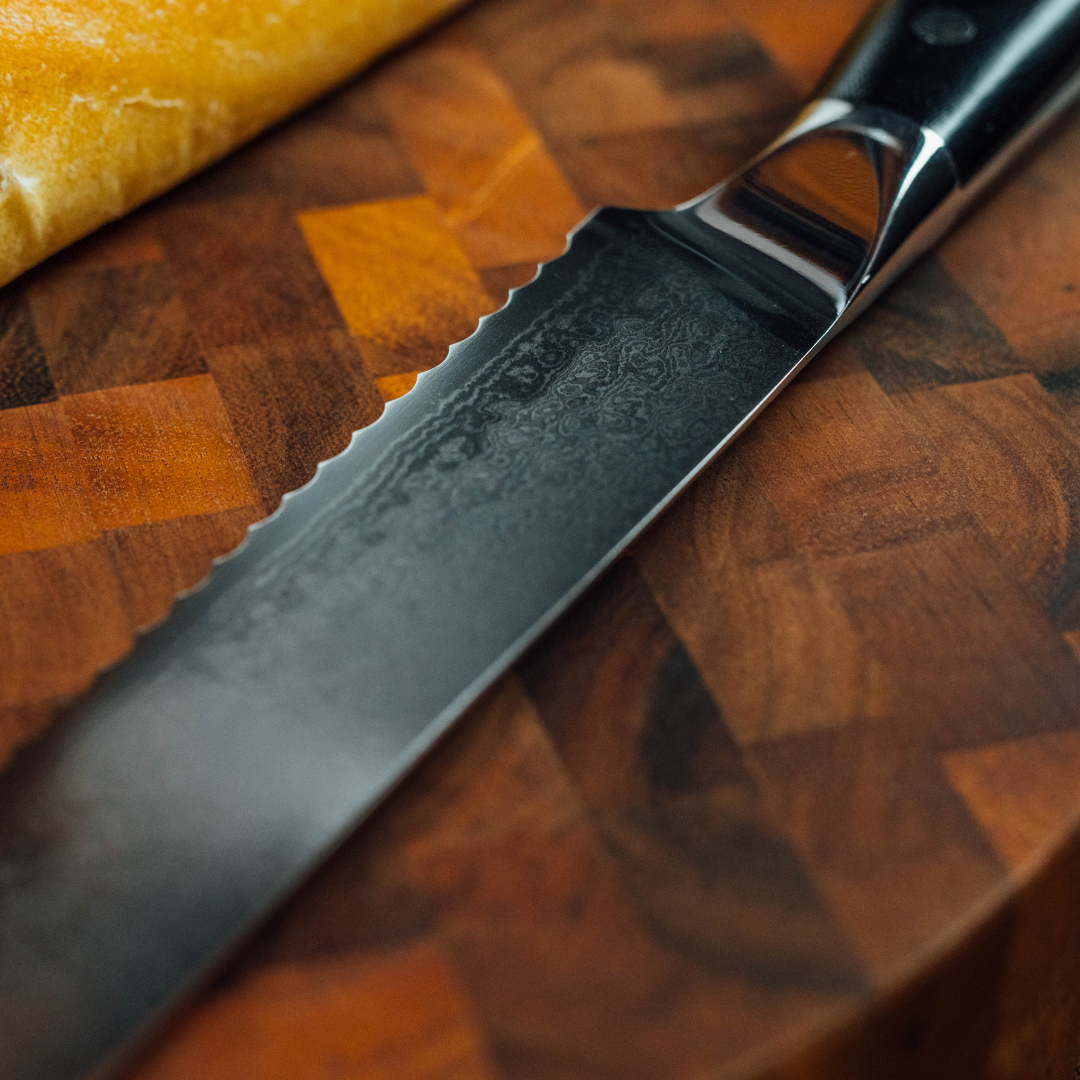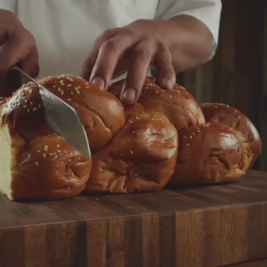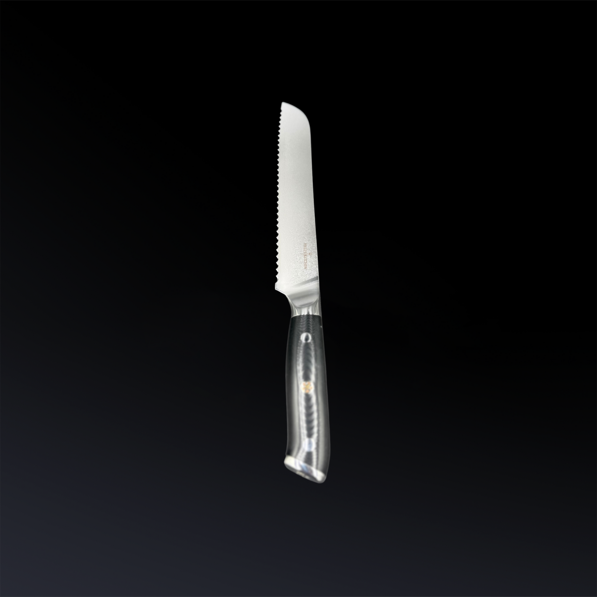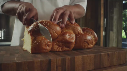 The Chef Knife's long, serrated blade slices through crusty bread, soft loaves, and pastries without crushing them. Its saw-like teeth handle tough exteriors and preserve soft interiors - great for cakes, tomatoes, and even frozen meats.