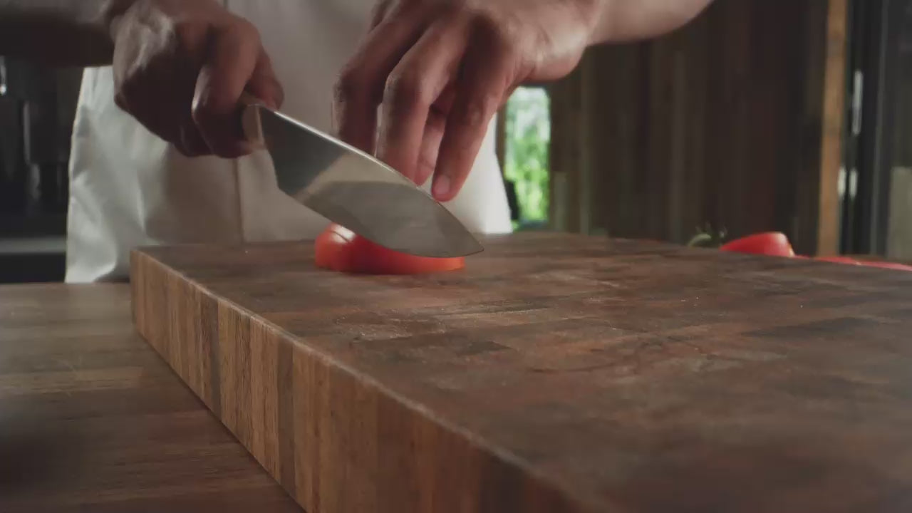 It glides through vegetables like they’re nothing. The balance is perfect, and it just feels right.